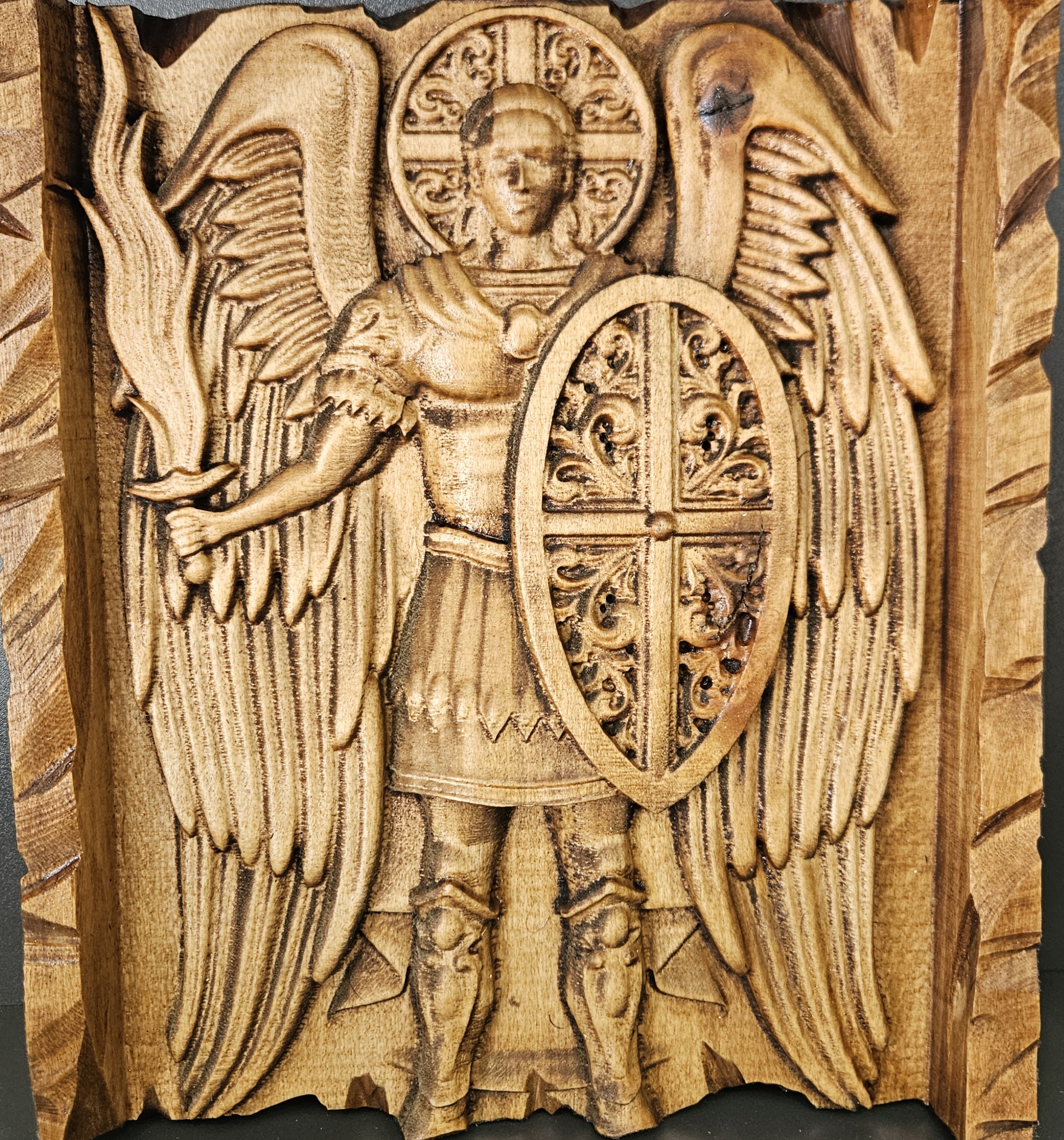Ξυλογλυπτη εικονα σε φλαμουρι